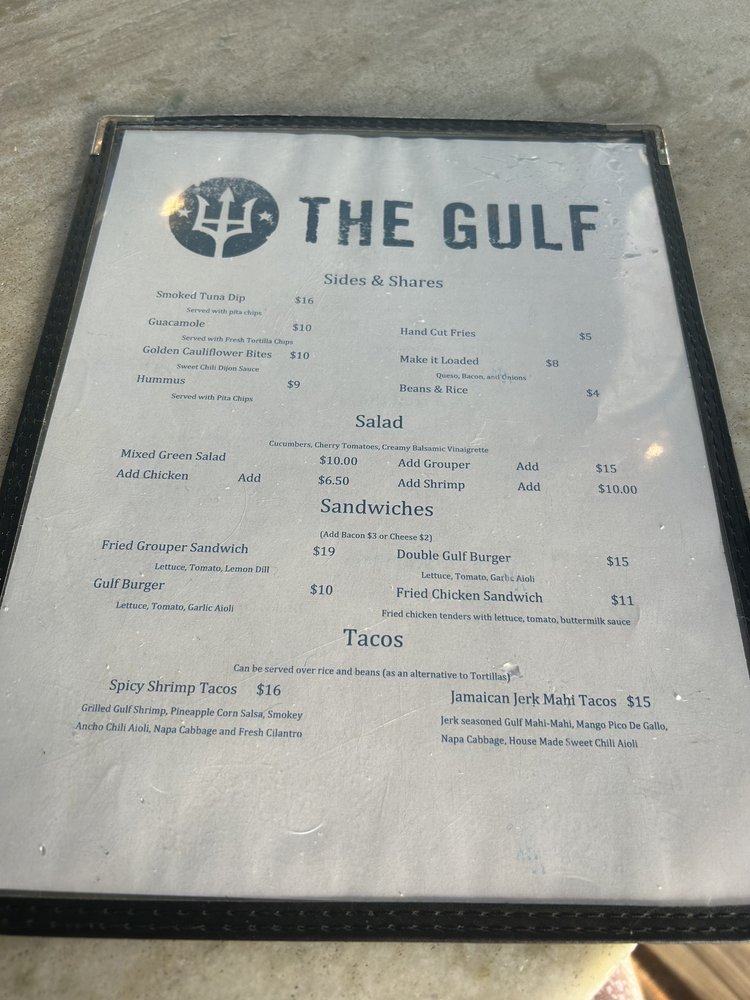 Introducing "The Gulf - Orange Beach", a casual and trendy dining spot offering a mix of burgers and seafood. Located at 27500 Perdido Beach Blvd Orange Beach, AL 36561, this restaurant boasts a wide range of amenities including outdoor seating, a full bar, and even smoking allowed. The menu features a variety of tasty options such as black beans rice, coconut fried fish bites, and loaded fries. Their sandwich selection includes a crispy chicken sandwich and a delicious grouper sandwich. Don't miss out on their mixed green salad with the option to add a protein of your choice. With vegan options available and a range of utilities like takeout and delivery, this spot is perfect for both lunch and dinner. Whether you're looking for a fun hangout spot or a delicious meal, "The Gulf - Orange Beach" has something for everyone.